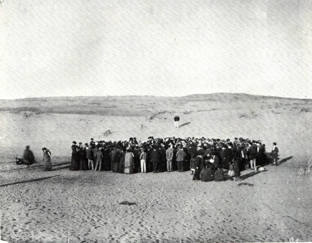 The families’ names were written on the white shells, while the plot numbers were written on the gray shells. In a symbolic and fair drawing, a boy pulled names from one box and a girl pulled the corresponding plot numbers from the other. This ensured an impartial distribution of land plots, as the families were all invested in building a new community from the sandy terrain they had purchased together.